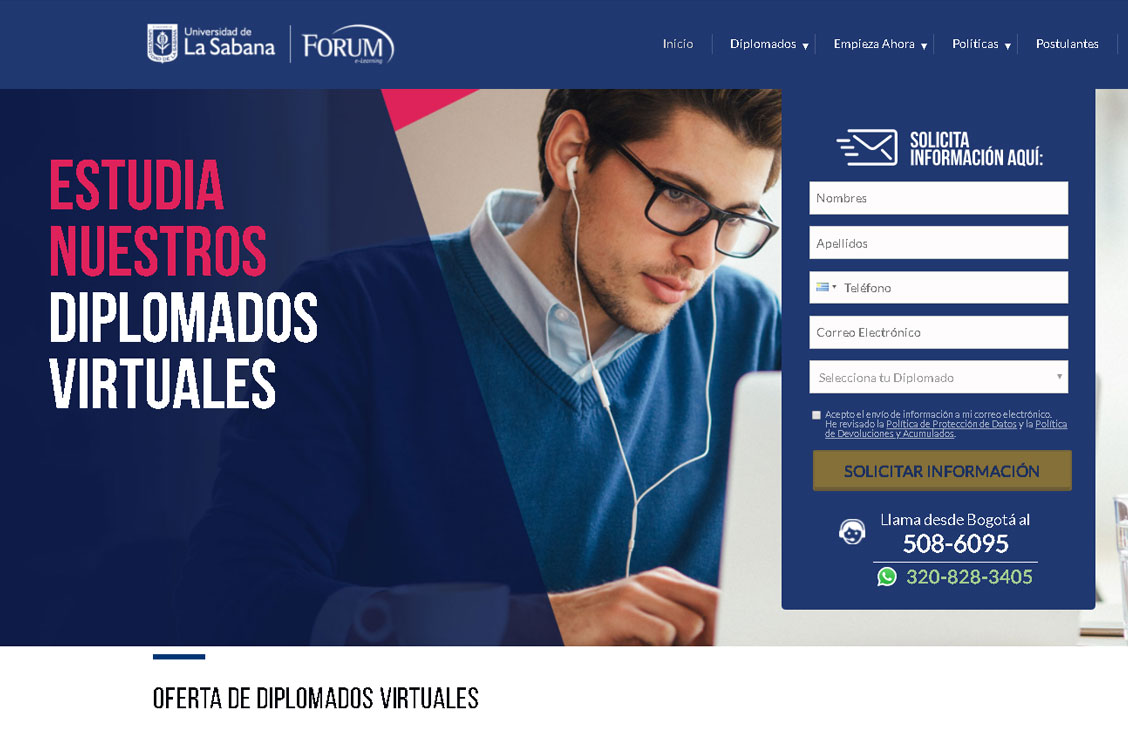 • El sitio web de la Universidad cumple el rol de folleto vivo, incluyendo la página de inicio, las subpáginas de las carreras, las fechas de comienzo y toda la información publicada.